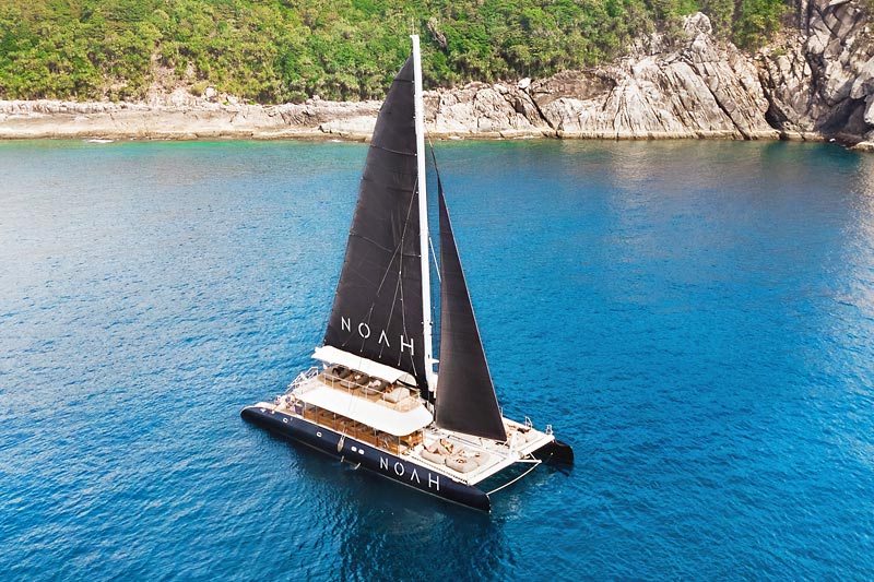 NOAH 73 Sailing Catamaran is a 73 ft. sailing catamaran which can accommodate up to 80 guests on day charter. This yacht is avialable for charter in Phuket.